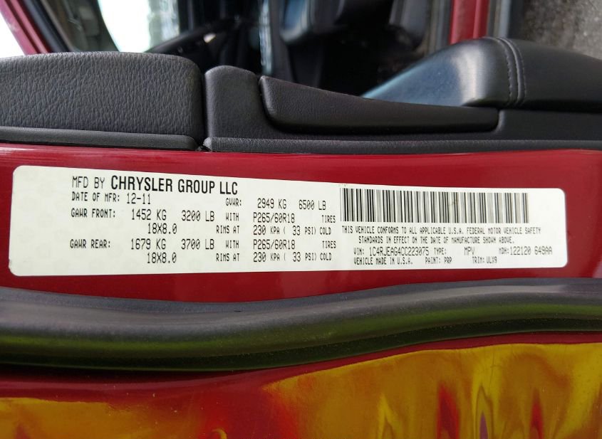 - VIN: 1C4RJEAG4CC223075