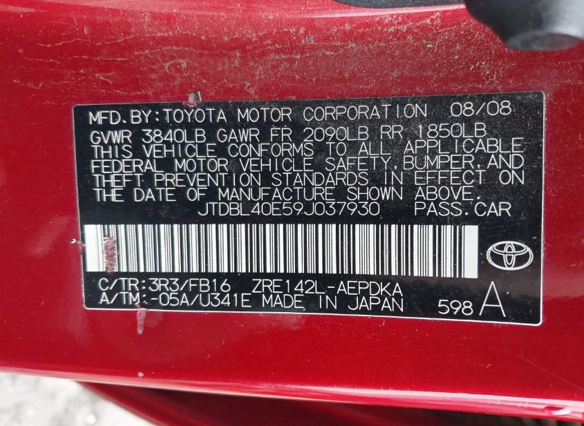 - VIN: JTDBL40E59J037930