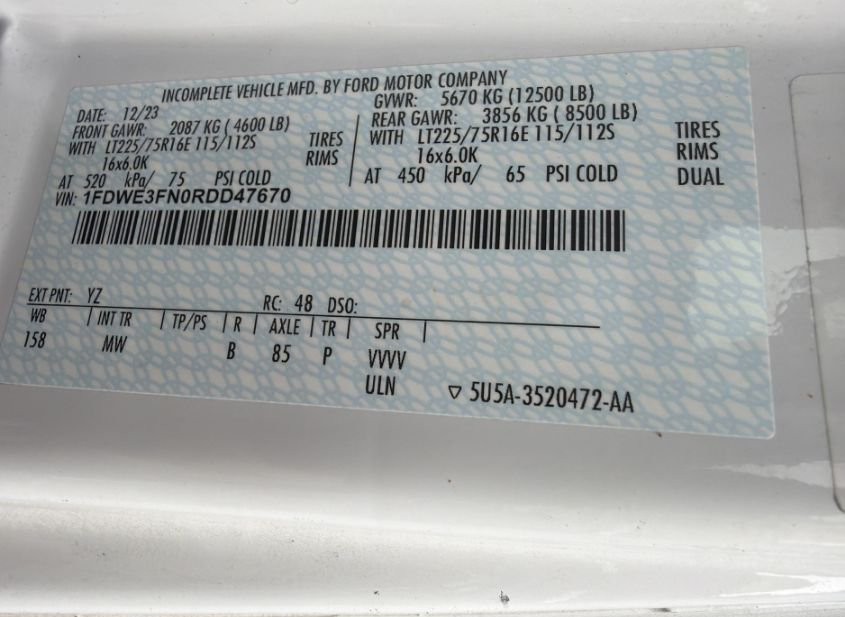 - VIN: 1FDWE3FN0RDD47670