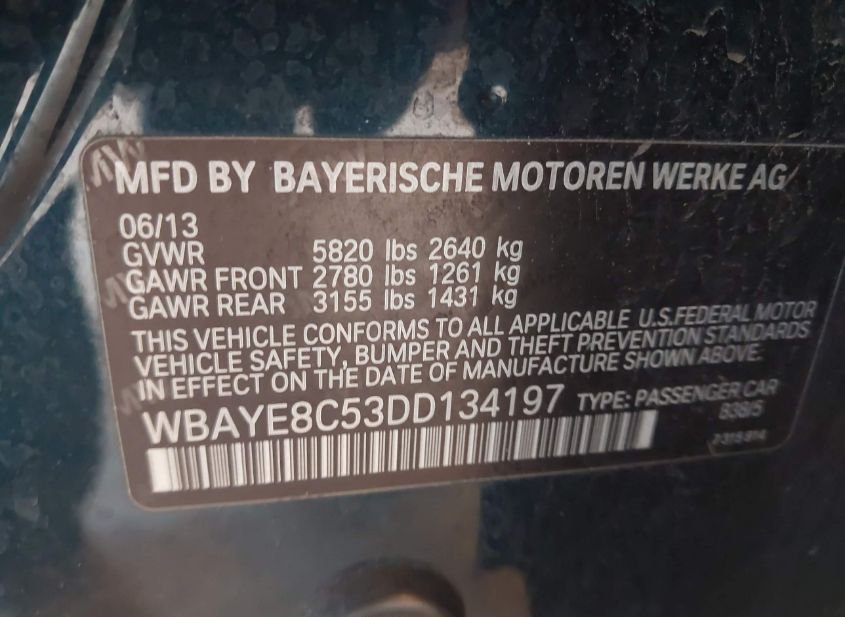- VIN: WBAYE8C53DD134197