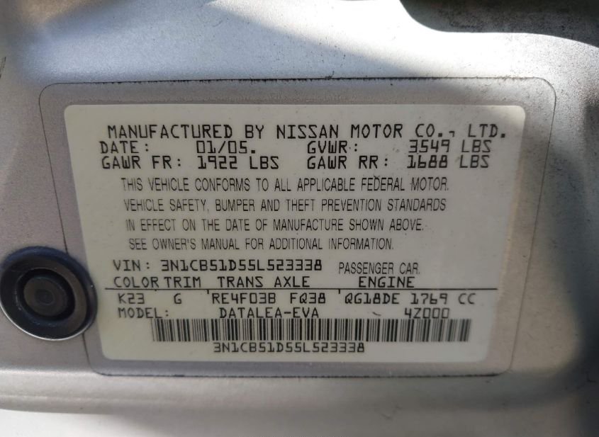 - VIN: 3N1CB51D55L523338