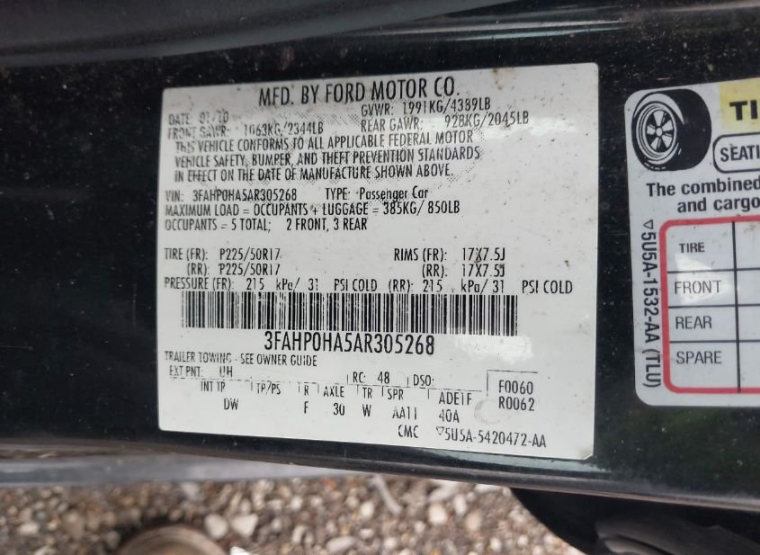 - VIN: 3FAHP0HA5AR305268