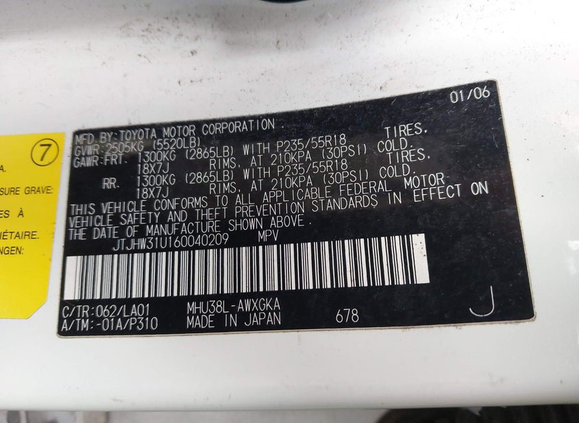 - VIN: JTJHW31U160040209
