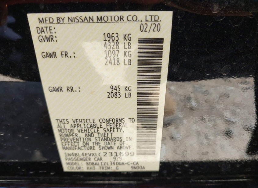 - VIN: 1N4BL4EVXLC231699
