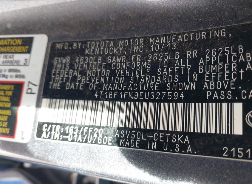 - VIN: 4T1BF1FK9EU327594
