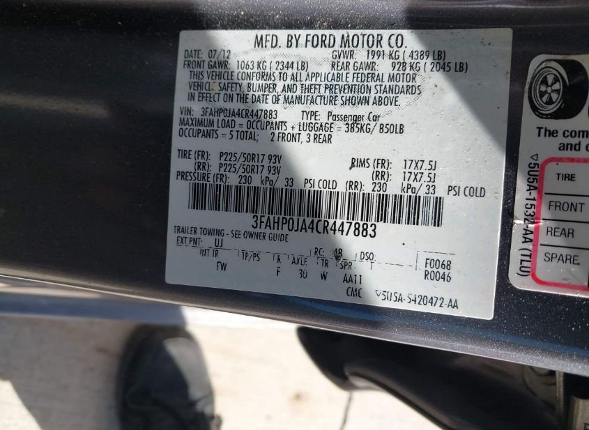 - VIN: 3FAHP0JA4CR447883
