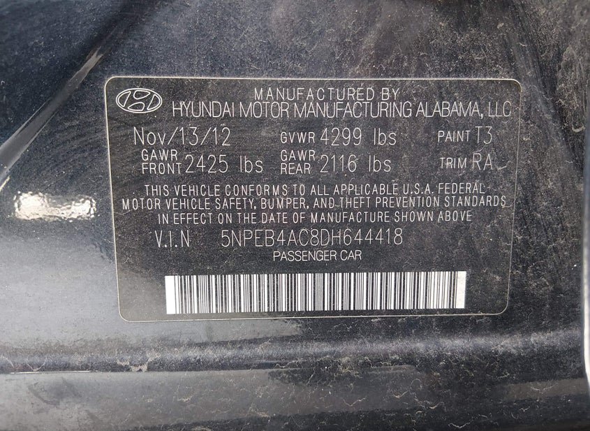 - VIN: 5NPEB4AC8DH644418