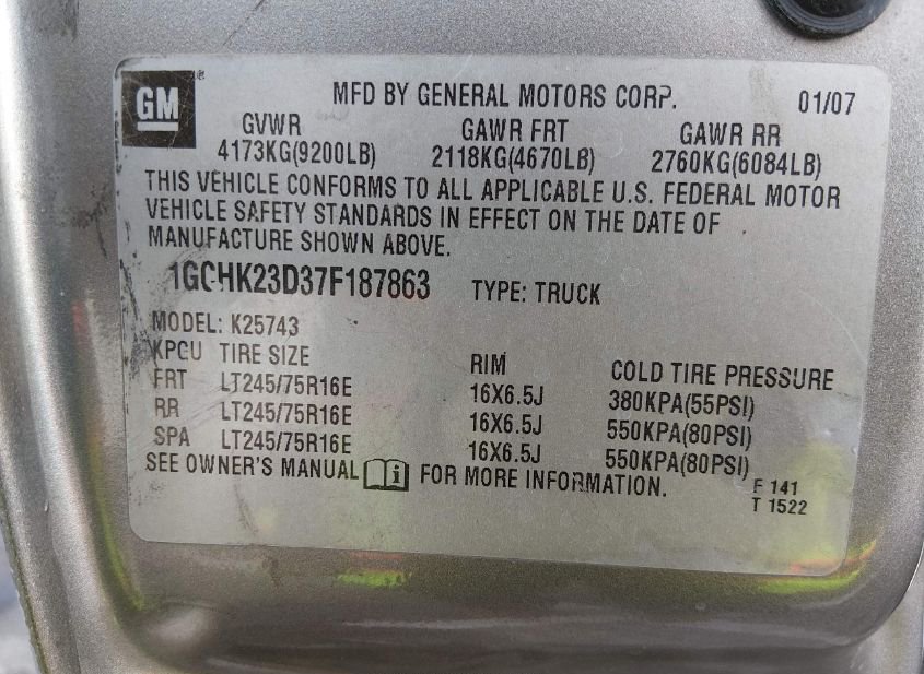 - VIN: 1GCHK23D37F187863