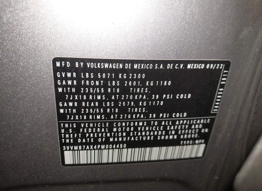 - VIN: 3VVMB7AX4PM004450