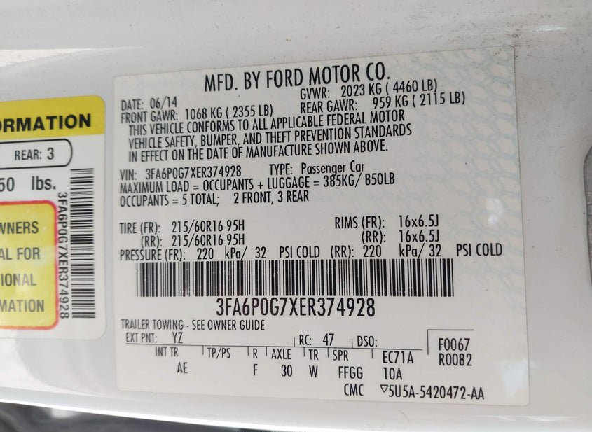- VIN: 3FA6P0G7XER374928