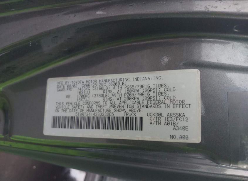 - VIN: 5TBRT34143S333265