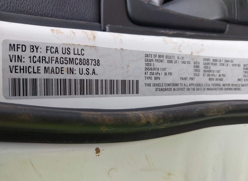 - VIN: 1C4RJFAG5MC808738
