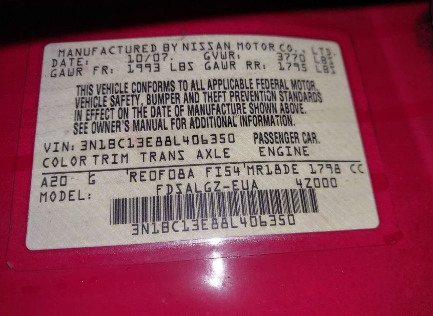 - VIN: 3N1BC13E88L406350