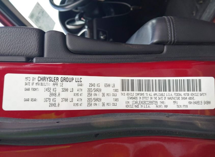 - VIN: 1C4RJEAG9CC299729