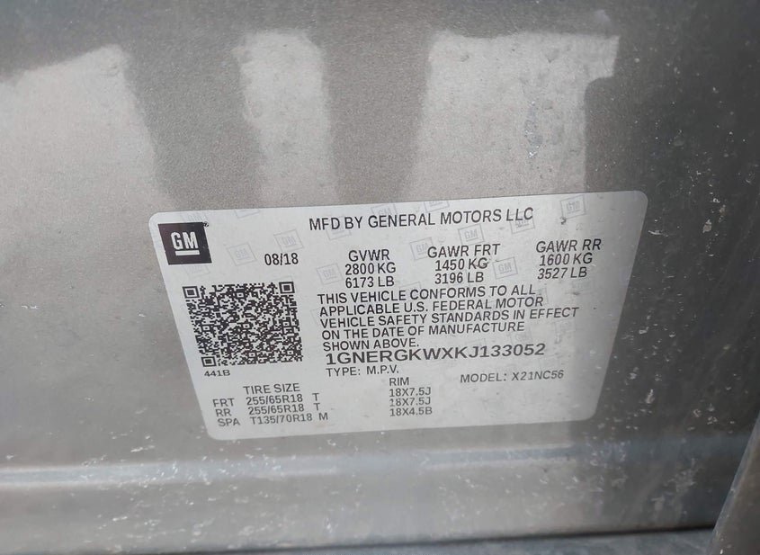 - VIN: 1GNERGKWXKJ133052