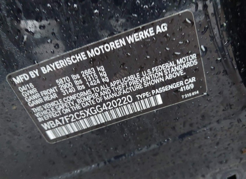- VIN: WBA7F2C5XGG420220