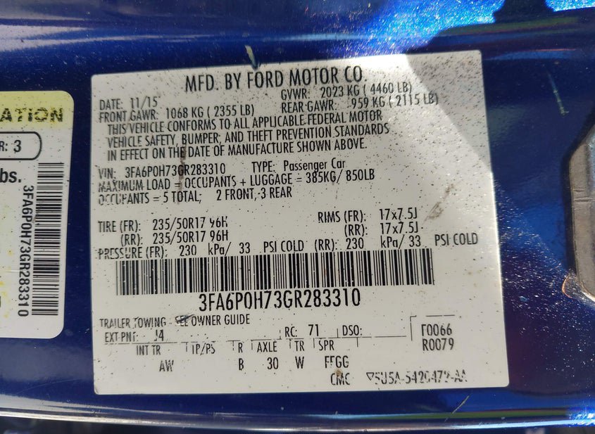 - VIN: 3FA6P0H73GR283310
