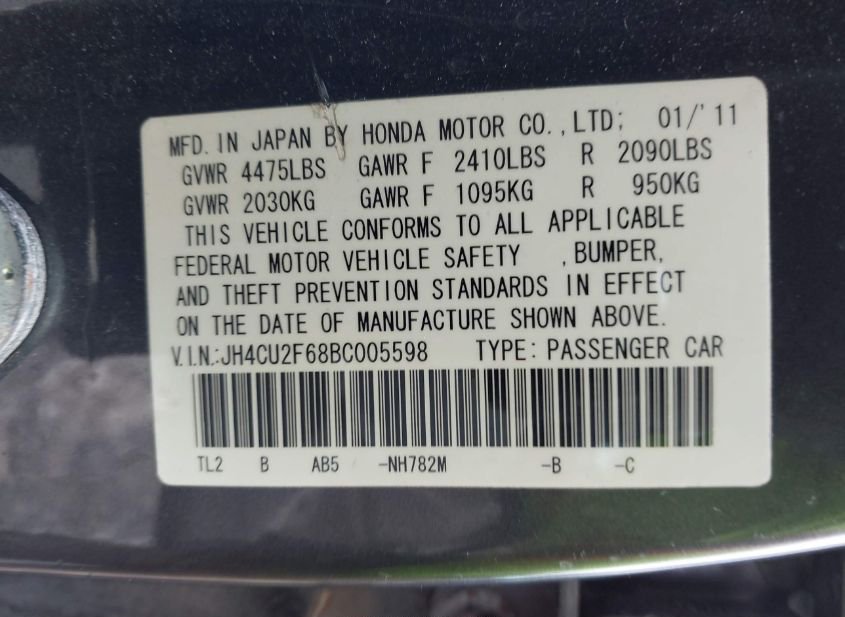 - VIN: JH4CU2F68BC005598