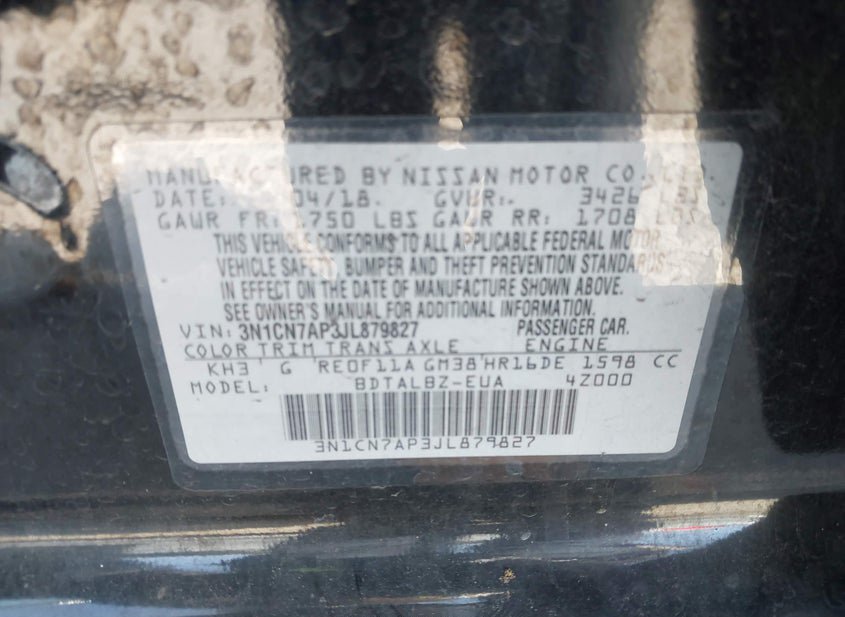 - VIN: 3N1CN7AP3JL879827