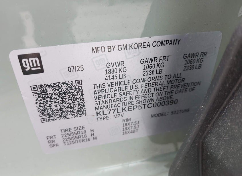 - VIN: KL77LKEP5TC000390