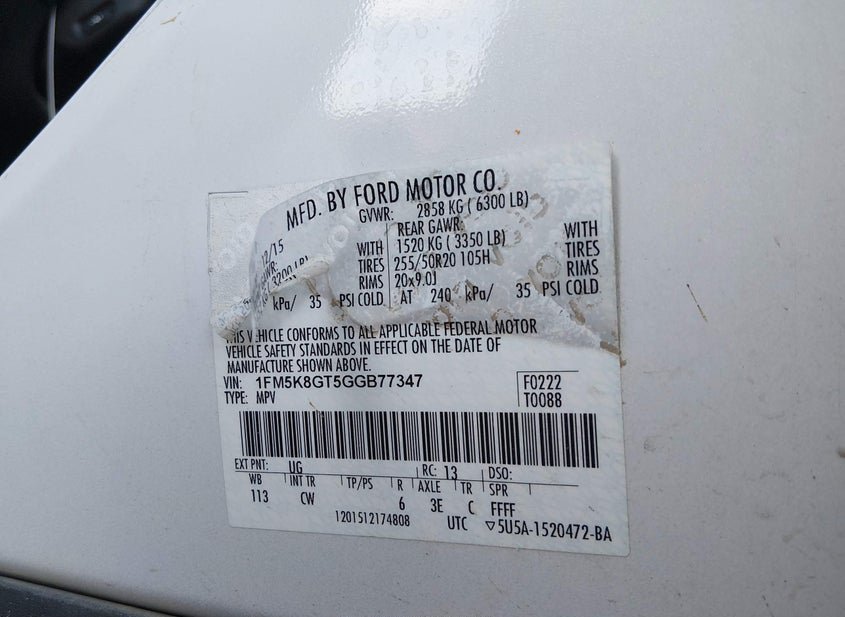 - VIN: 1FM5K8GT5GGB77347