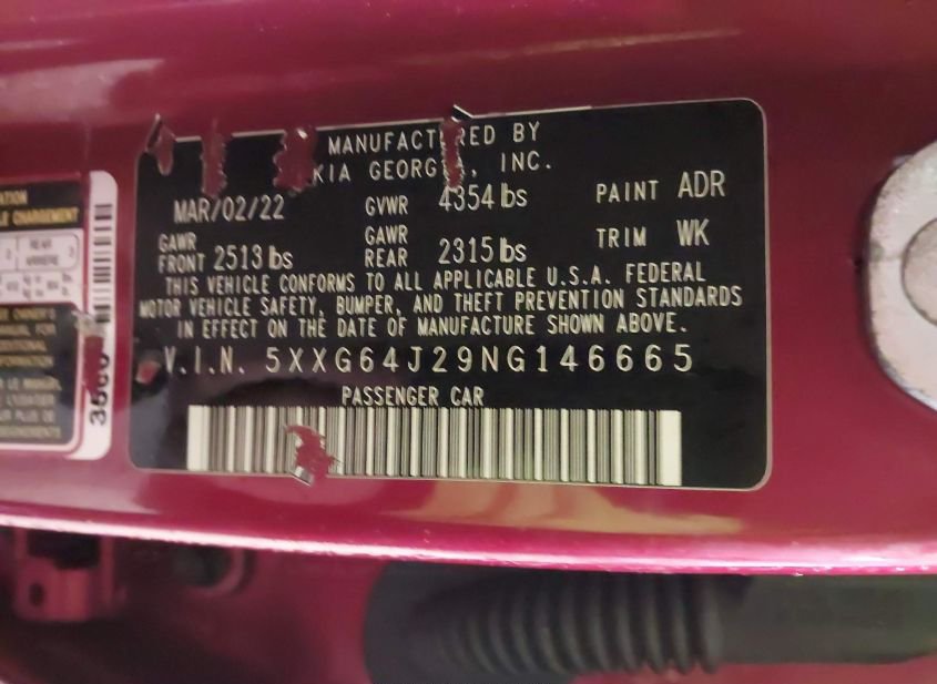 - VIN: 5XXG64J29NG146665