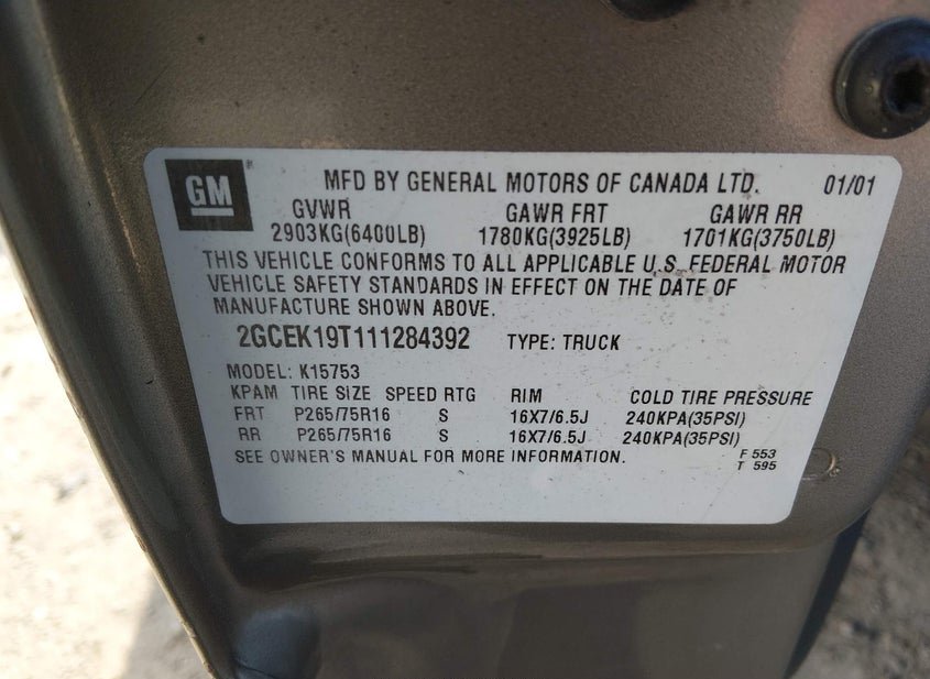 - VIN: 2GCEK19T111284392