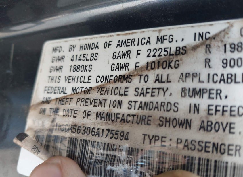 - VIN: 1HGCM56306A175594