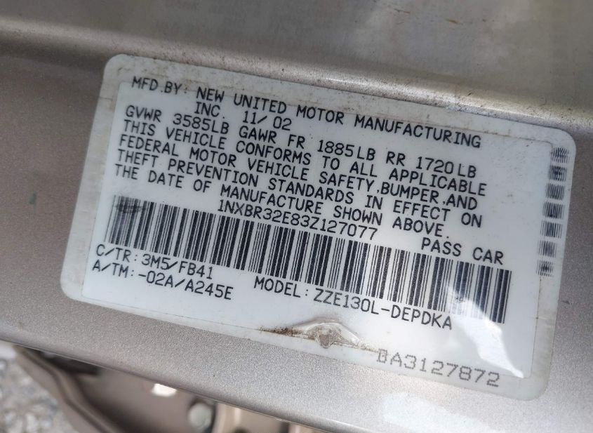 - VIN: 1NXBR32E83Z127077