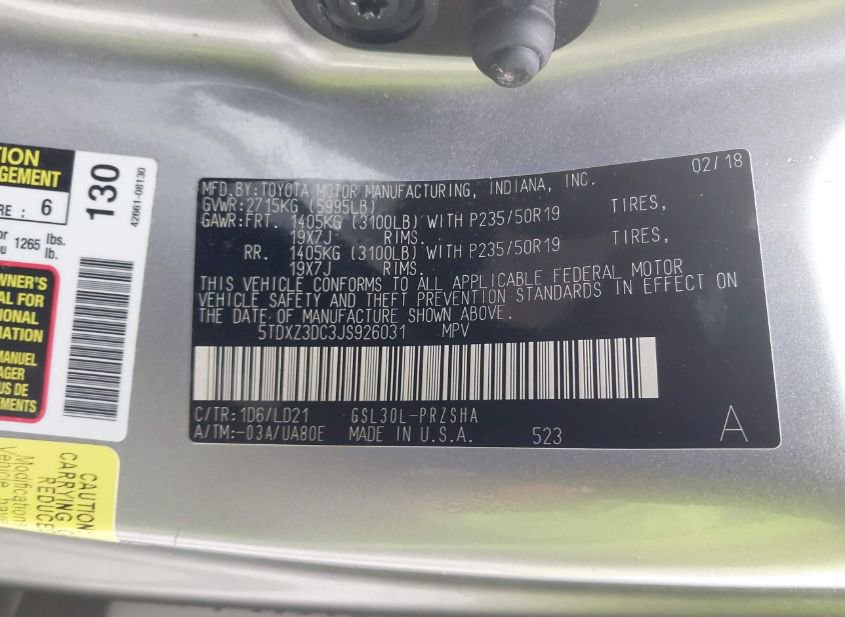 - VIN: 5TDXZ3DC3JS926031
