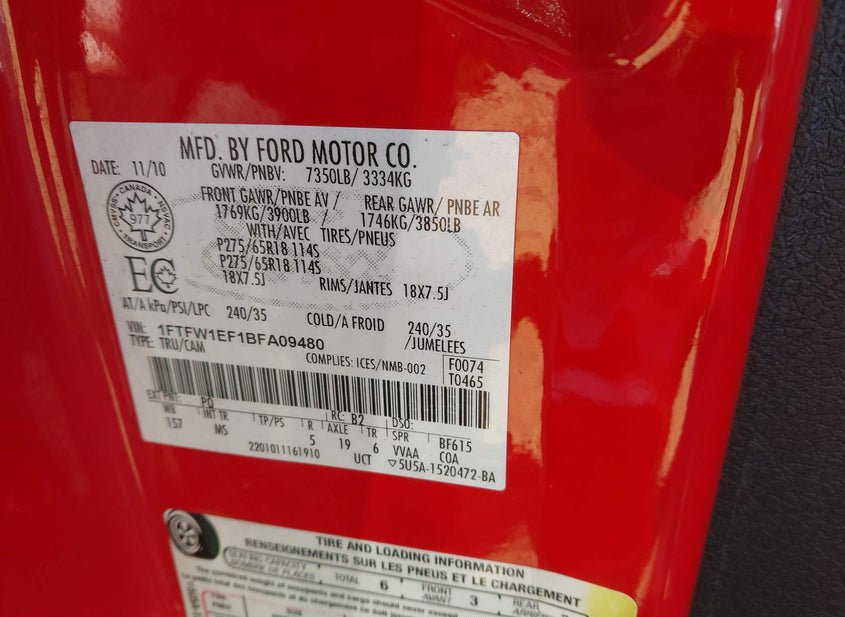 - VIN: 1FTFW1EF1BFA09480
