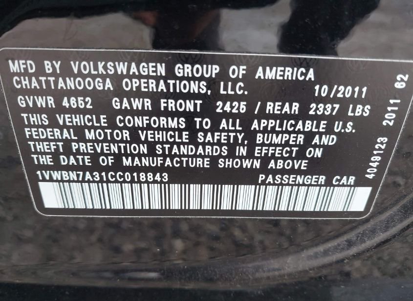 - VIN: 1VWBN7A31CC018843