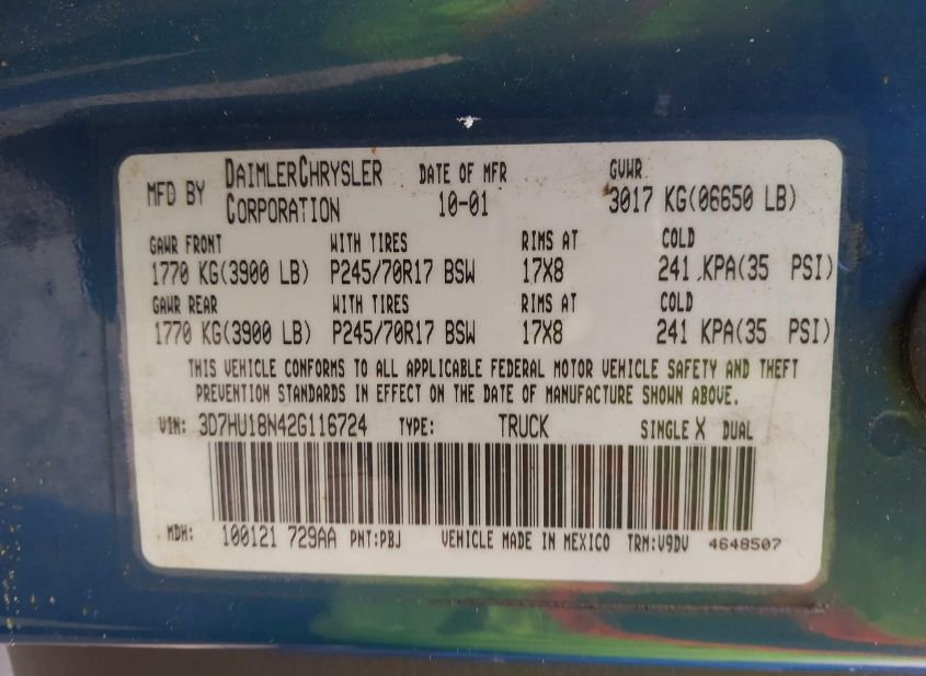 - VIN: 3D7HU18N42G116724