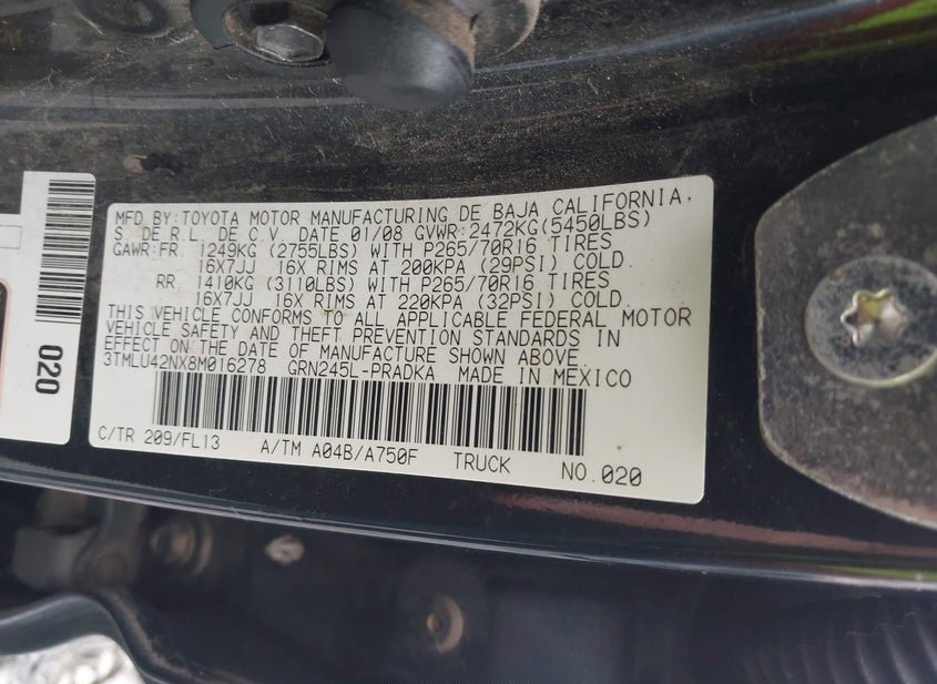 - VIN: 3TMLU42NX8M016278