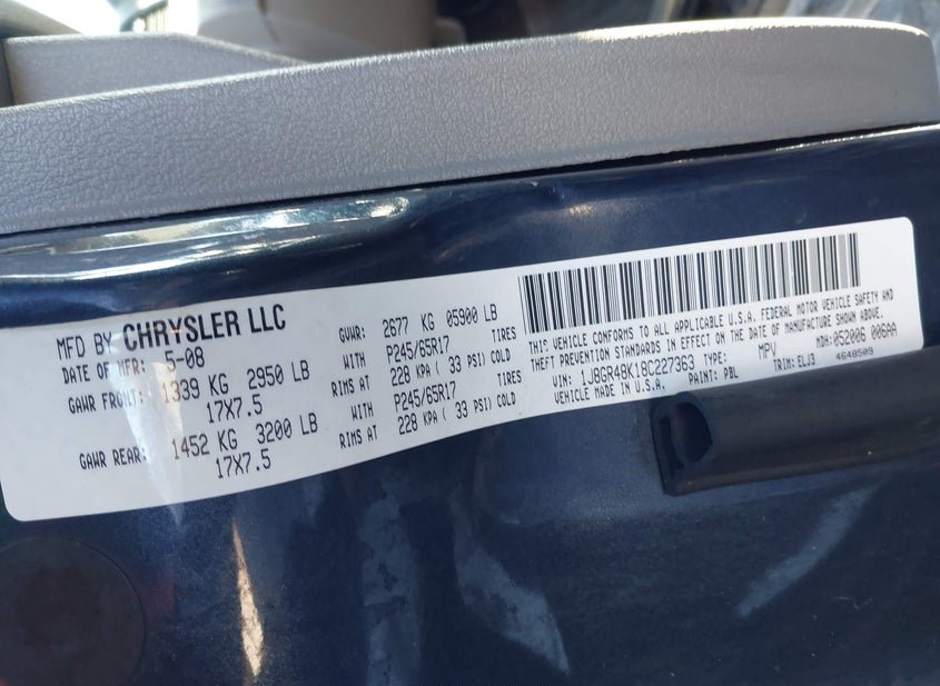 - VIN: 1J8GR48K18C227363