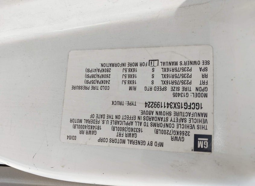 - VIN: 1GCFG15X341199224