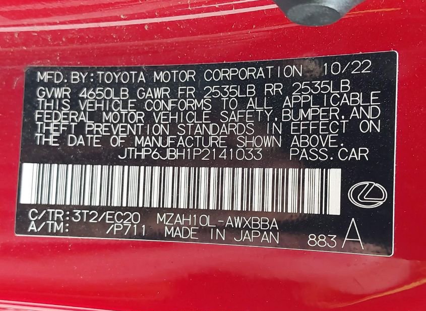 - VIN: JTHP6JBH1P2141033