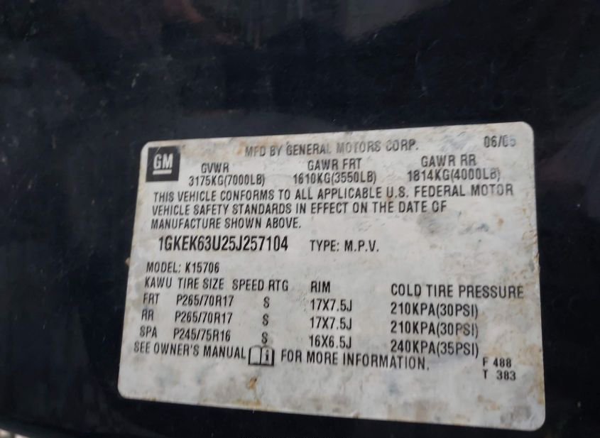 - VIN: 1GKEK63U25J257104