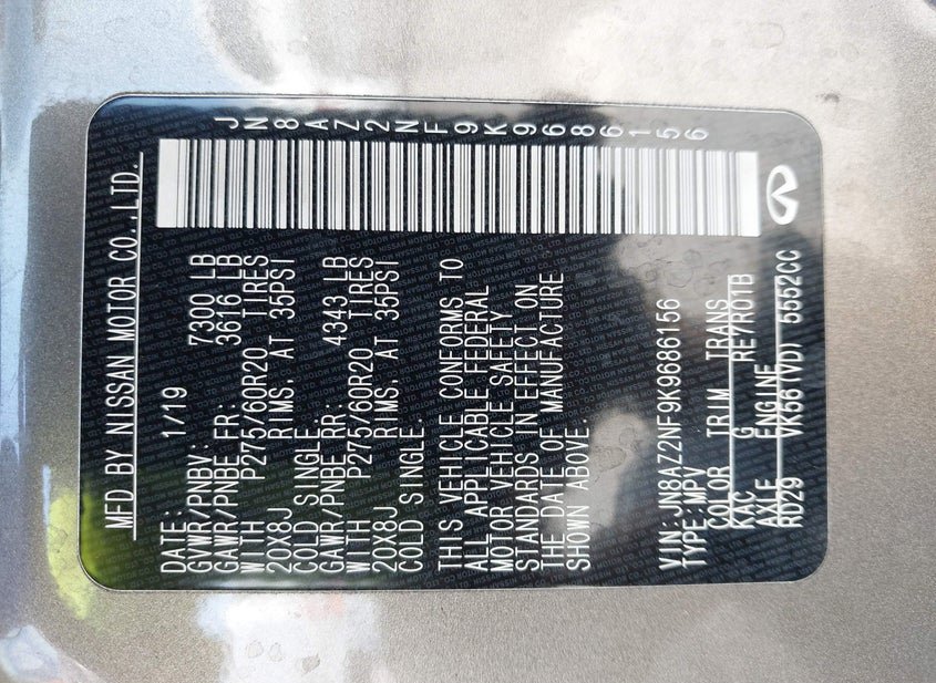 - VIN: JN8AZ2NF9K9686156