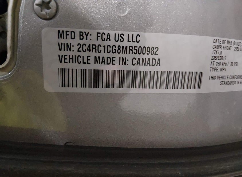 - VIN: 2C4RC1CG8MR500982