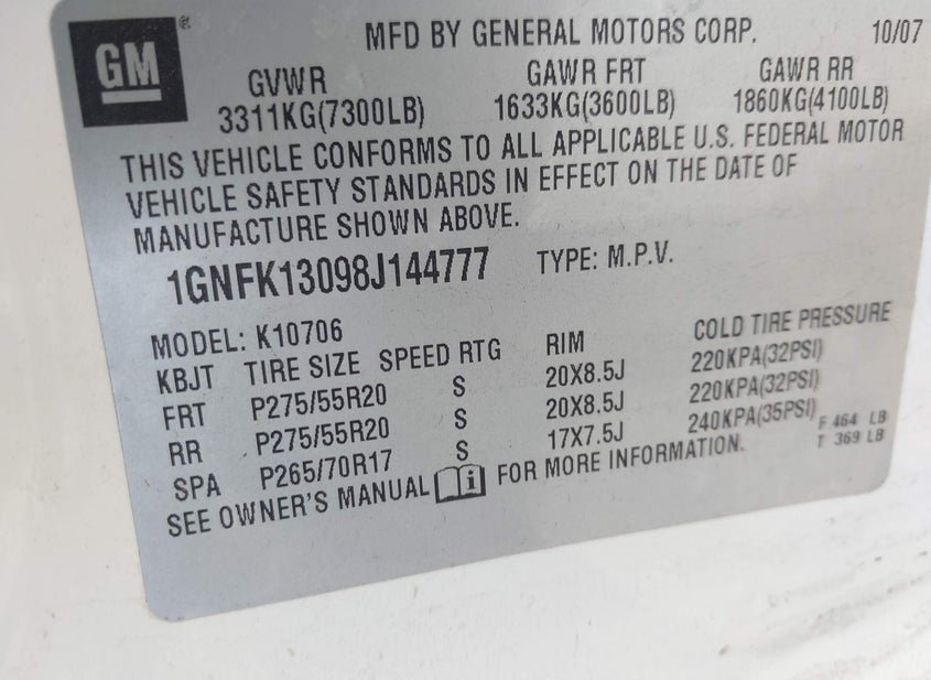 - VIN: 1GNFK13098J144777