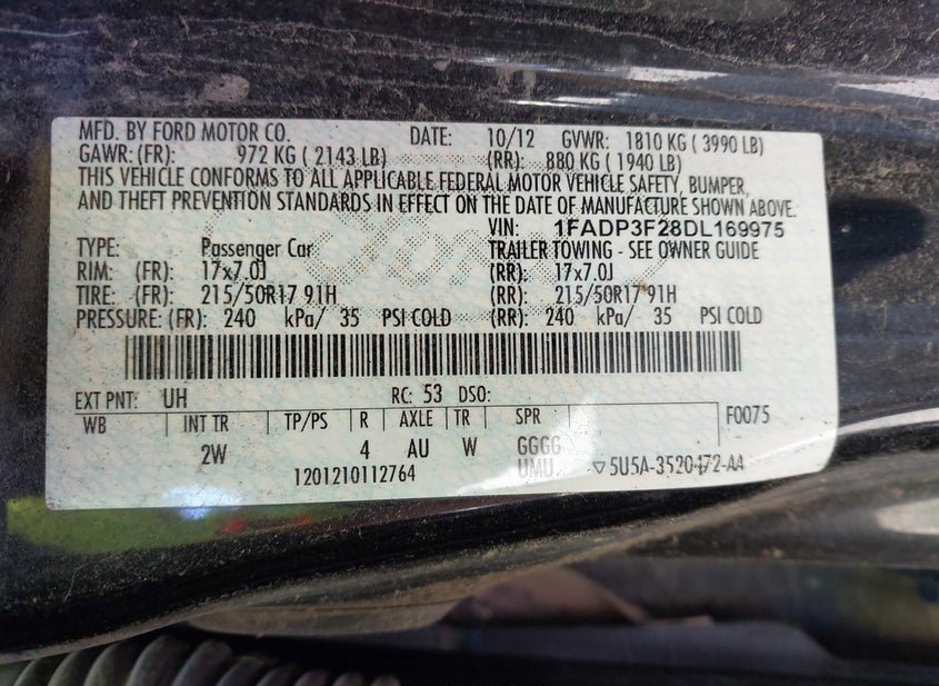 - VIN: 1FADP3F28DL169975