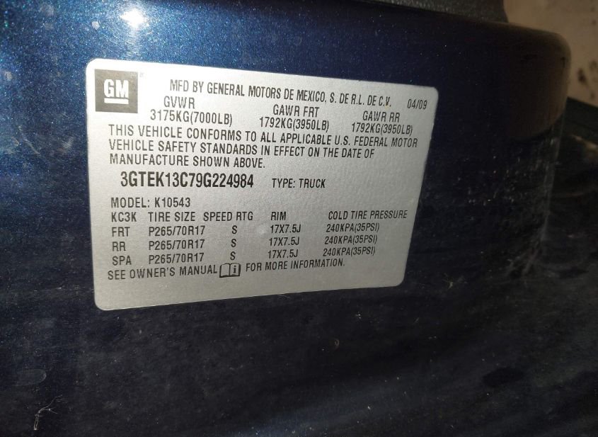 - VIN: 3GTEK13C79G224984