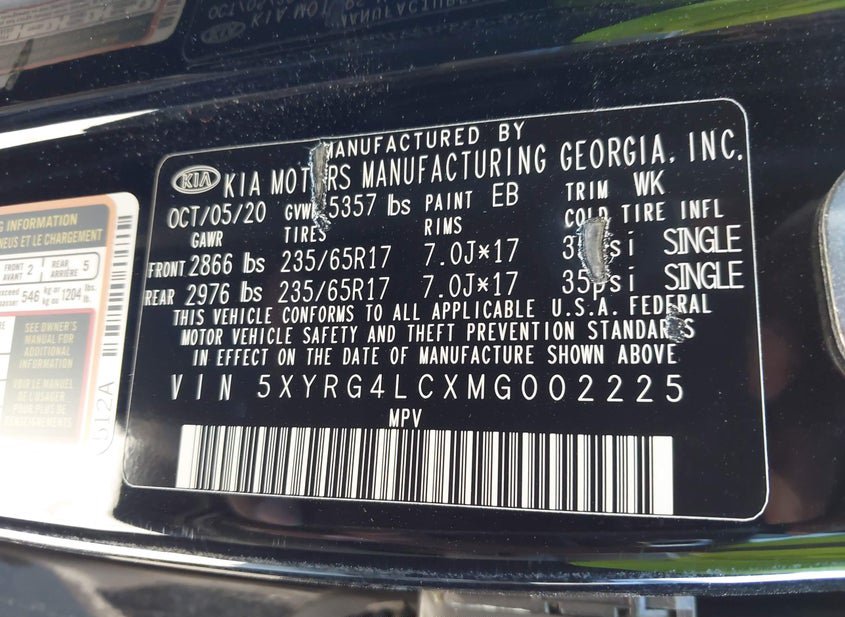 - VIN: 5XYRG4LCXMG002225