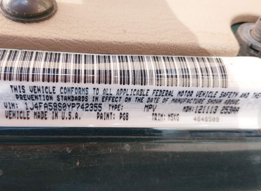 - VIN: 1J4FA59S0YP742355