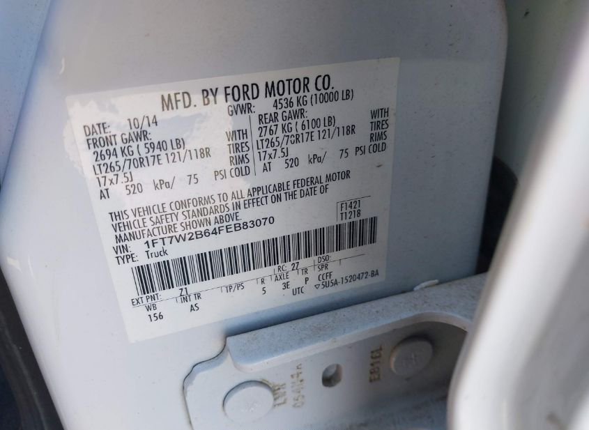 - VIN: 1FT7W2B64FEB83070
