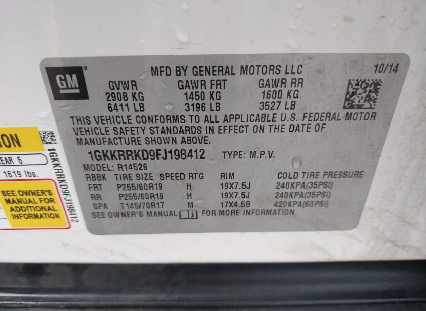 - VIN: 1GKKRRKD9FJ198412