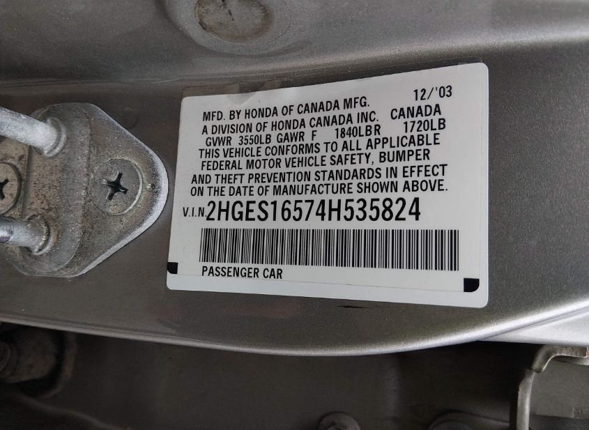 - VIN: 2HGES16574H535824