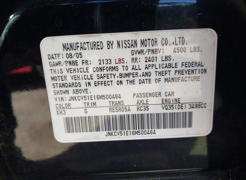 - Название лота: 2006 INFINITI G35
