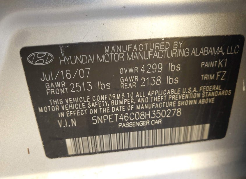 - VIN: 5NPET46C08H350278